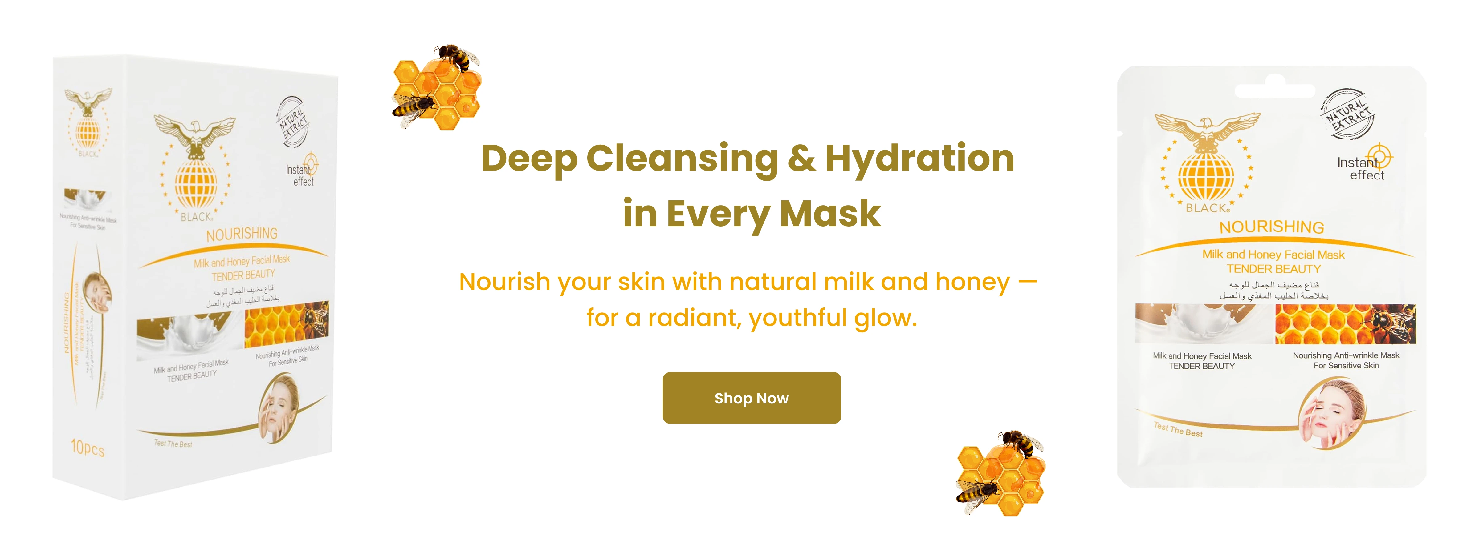 قناع الوجه الأسود بالحليب والعسل (عبوة من 10 قطع)